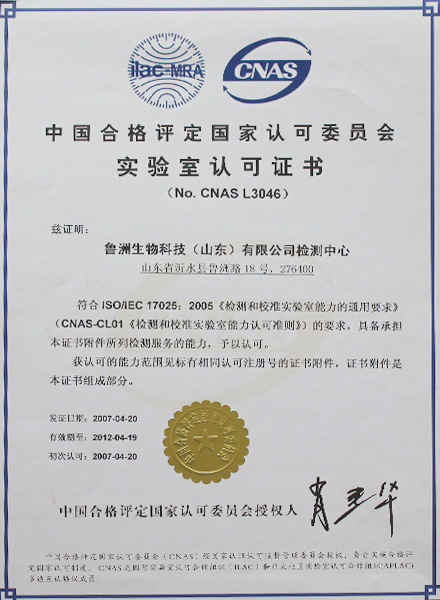 國家實(shí)驗(yàn)室認(rèn)可證書