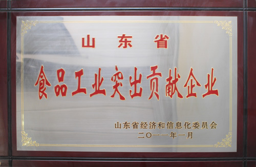 山東省食品工業(yè)突出貢獻企業(yè)