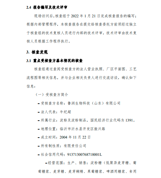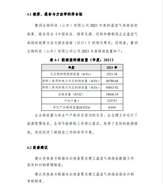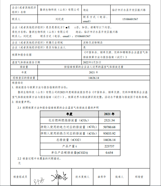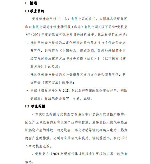 魯洲生物科技(山東)有限公司2021年度溫室氣體排放核查報(bào)告